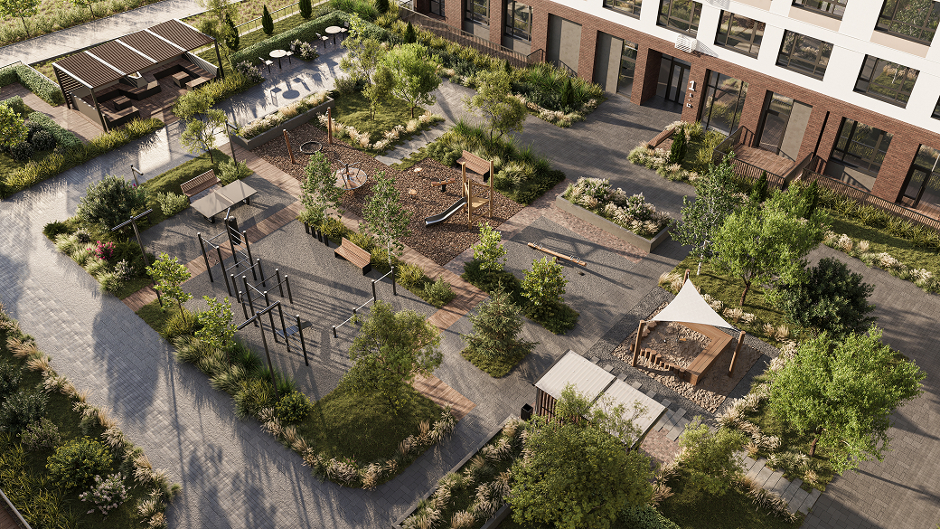 В парковом квартале созданы безопасные и экологичные пространства для детских игр и спортивные зоны.