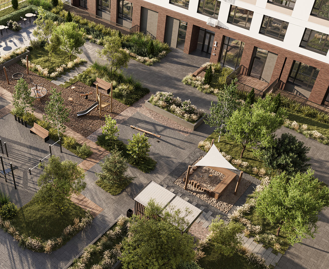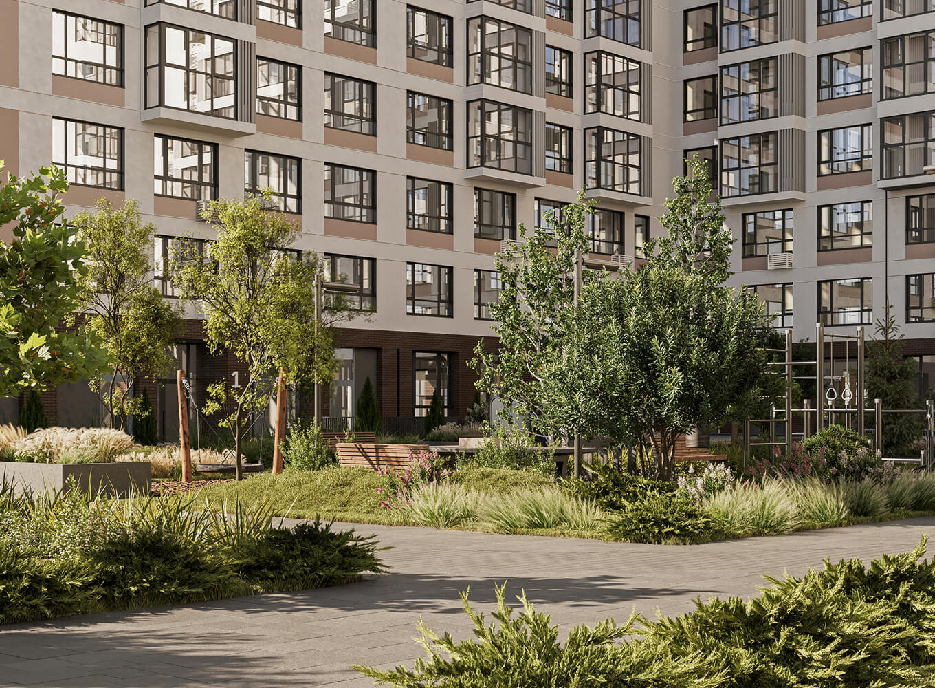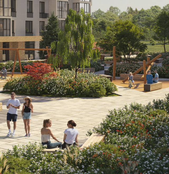 На территории паркового квартала мы воплотили концепцию, которая превратила двор в большой парк. Уютное пространство с продуманным ландшафтным дизайном становится продолжением каждого дома. Зеленые аллеи с брусчаткой соединены в единое парковое пространство, формирующее органичную экосистему.
